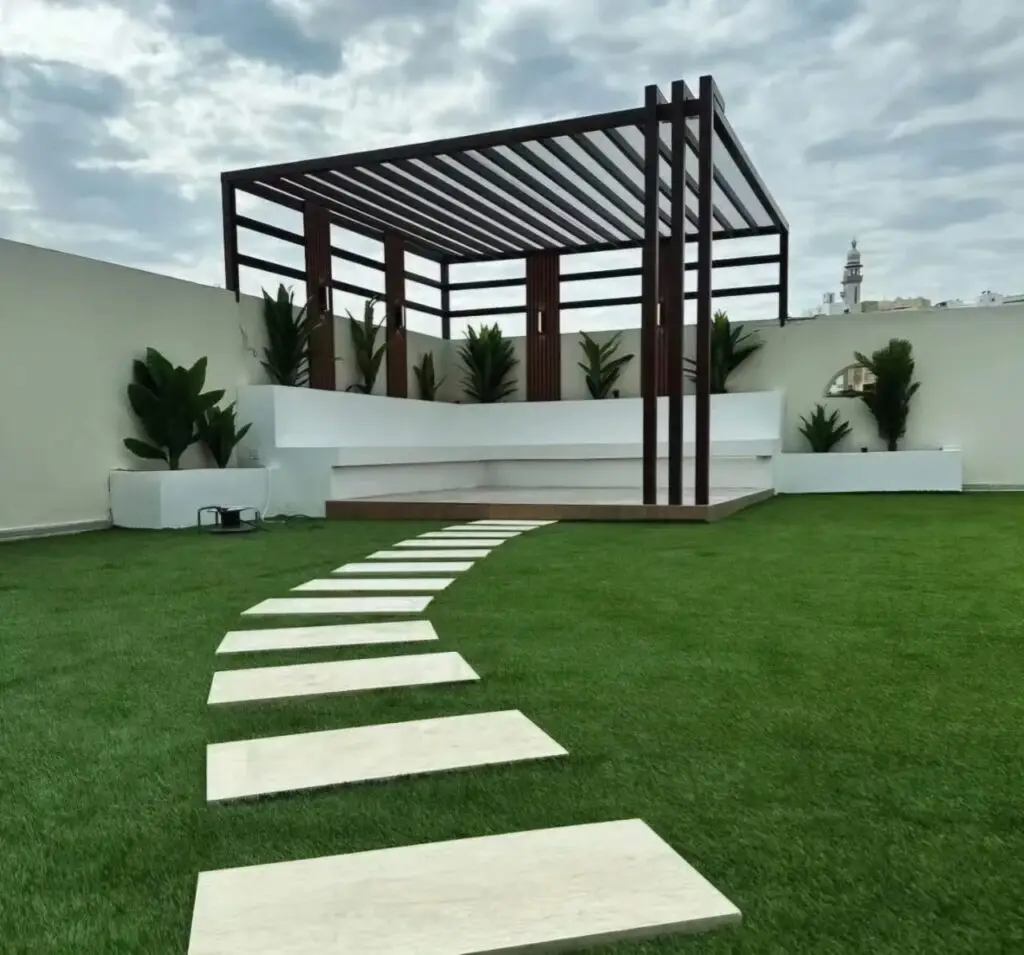 تنسيق الحدائق والعشب الصناعي يمنح المكان جمالاً طبيعيًا دون عناء تصميمات الحدائق المتقنة تضيف لمسة حيوية وألوان جذابة للمساحات الخارجية العشب الصناعي يوفر مظهراً دائماً أخضر وجاهزاً للاستخدام في أي وقت يجمع بين الجمال والعملية وسهولة الصيانة يحول الحدائق والجلسات والممرات لمكان مثالي للراحة والاسترخاء